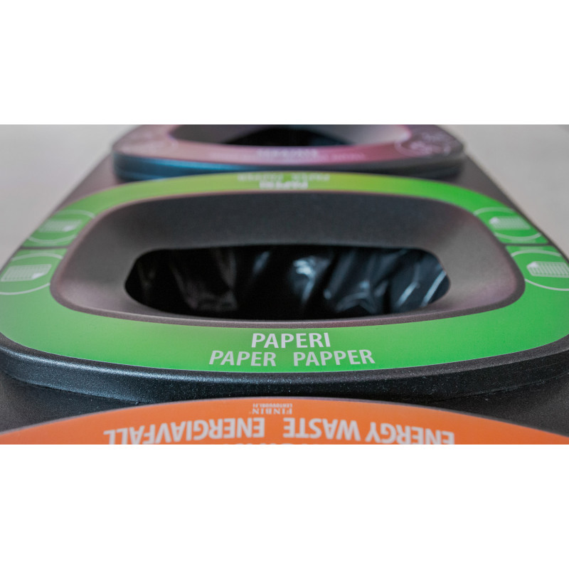 The stylish Finbin® Bermuda is specifically designed as an indoor recycling bin. The dual bin, triple bin and quad bin versions of Bermuda are suitable for recycling two, three or four different types of waste materials. For instance, a lid with a round aperture has been designed for the recycling of bottles.