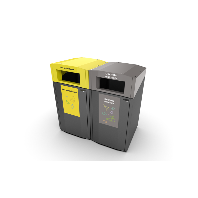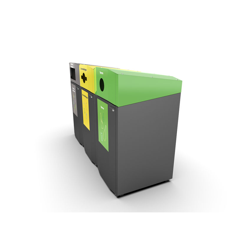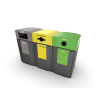 The EkoCity Flow 240 can be used as a standalone unit or as part of a larger sorting station. The bins can be placed side by side or back to back, enabling clear and systematic recycling. The body and insertion openings can be customized in different colors to support branding and sorting guidance. Standard sorting labels are also available.
